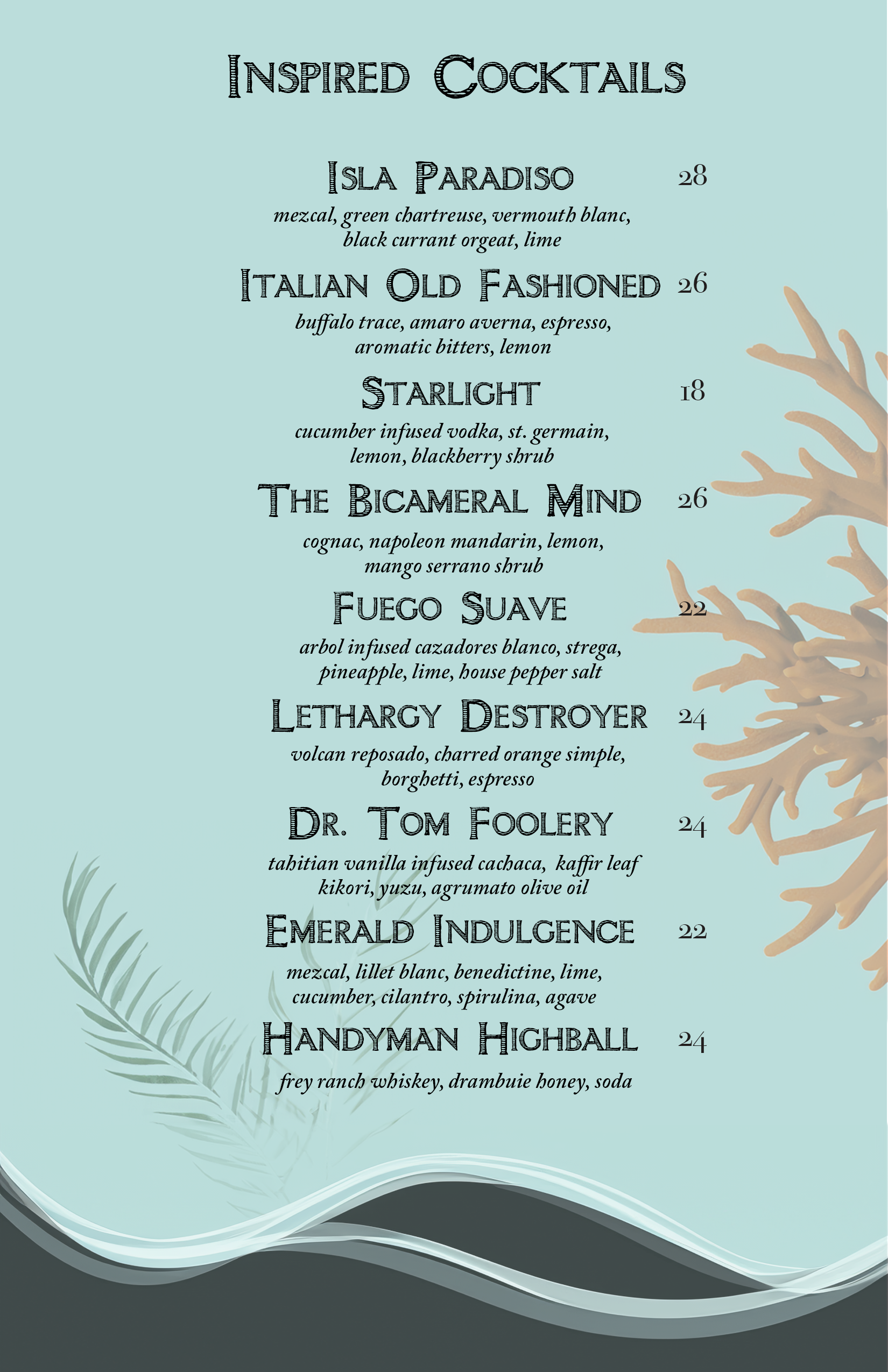 Here you will find our current offerings. We will refrain from reminding you that everything is good and instead offer to curate a bespoke experience for you from start to end. The ingredients our paint, and your plate or cup is the canvas. Prepare to be intrigued, beguiled, and awe inspired. You will soon get to enjoy Hani Tua.
